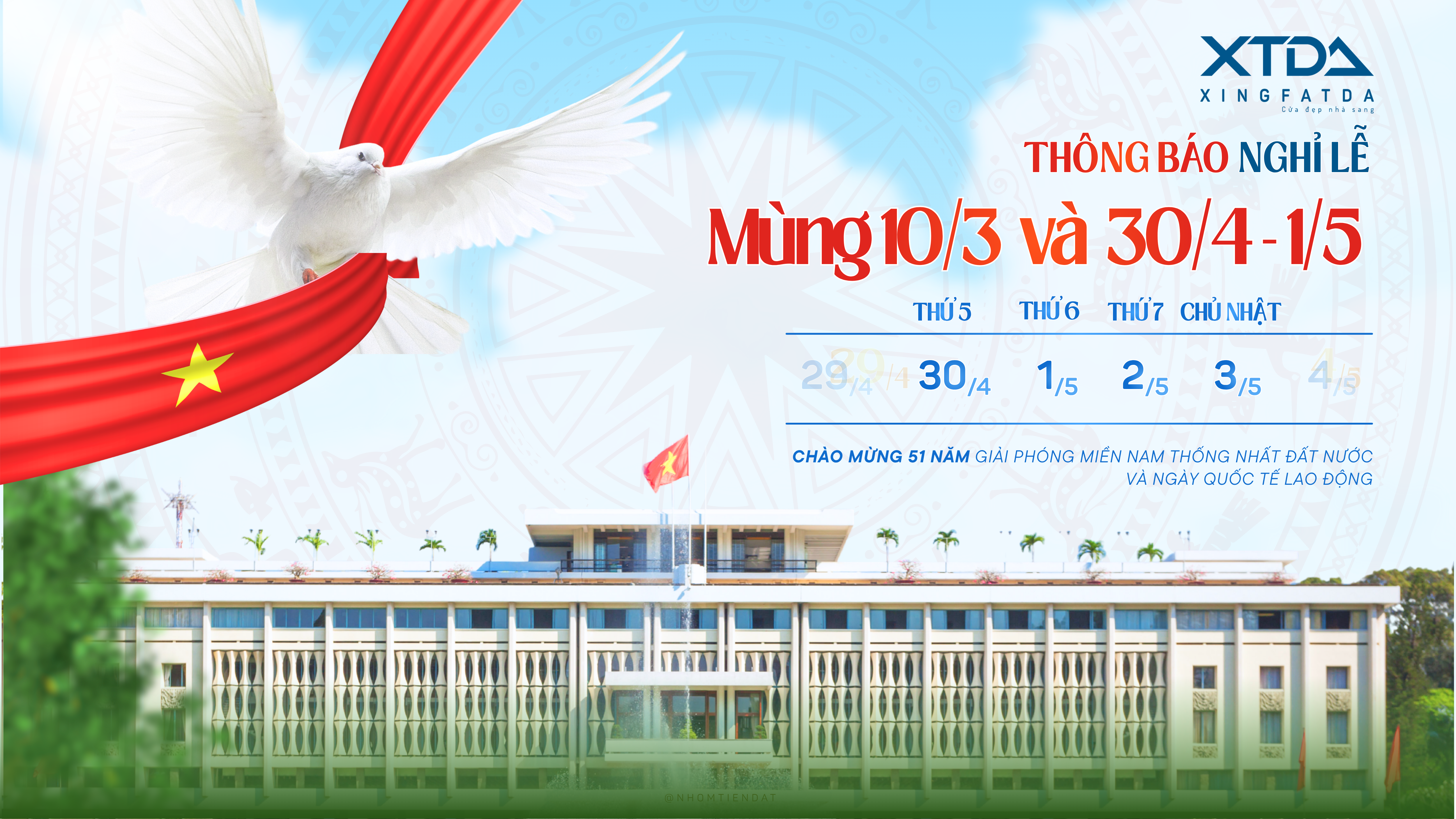 Công ty TNHH Nhôm Tiến Đạt xin trân trọng thông báo lịch nghỉ lễ Giải phóng miền Nam 30/4 và Quốc tế Lao động 1/5 như sau: